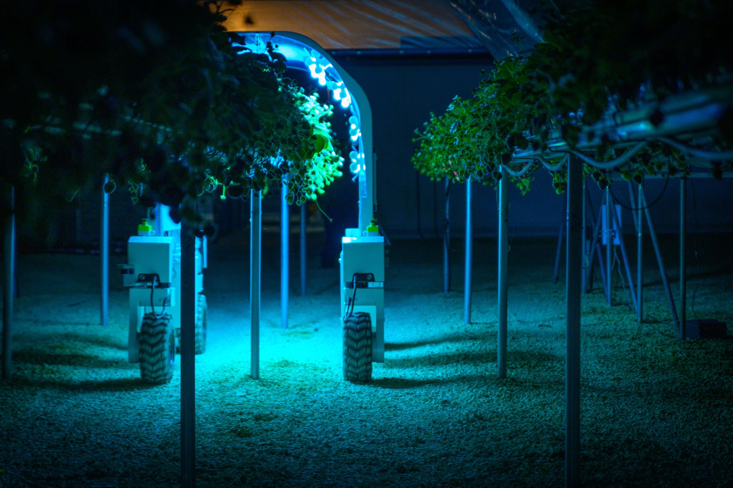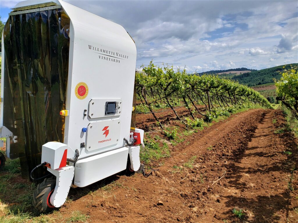 Thorvald is a multi-functional robot capable of controlling powdery mildew through UV-C treatment. It can also be used for other autonomous tasks around the farm or vineyard. Thorvald can perform tasks such as UV-C light treatment, picking fruits and vegetables, phenotyping, in-field transportation, cutting grass for forage, spraying and data collection/crop prediction.