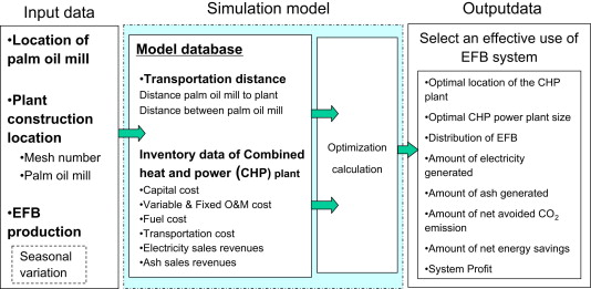 Biomass refers to renewable energy sources and comes from biological materials such as trees, plants, manure as well as municipal solid wastes. Effective utilization of biomass as an energy resource requires the use of an optimization model to take into account biomass availability, transportation distances, and the scales and locations of power facilities within a region. In this study, we develop a new analytical tool that integrates cost, energy savings, greenhouse gas considerations, scenario analysis, and a Geographic Information System (GIS) to provide a comprehensive analysis of alternative systems for optimizing biomass energy production. The goal is to find a system that optimizes the use of biomass waste by analyzing the cost, net avoided CO2 emission, and net energy savings with the objective of profit maximization. In this paper, we describe an application of the modeling tool described above to one of the fastest growing agriculture industries in Asia, the palm oil industry, for the case of Malaysia. Five scenarios utilizing palm oil waste as energy resources are discussed. The scenario of installing of new Combined Heat and Power (CHP) plants in the region yielded a number of benefits in terms of net energy savings, net avoided CO2 emission, and profits. The results also demonstrate the benefits of utilizing excess heat for biomass pre-treatment. The choice of a suitable CHP plant scale, management strategies for biomass seasonal availability, and market price of biomass are also important factors for effective use of the biomass in a region.