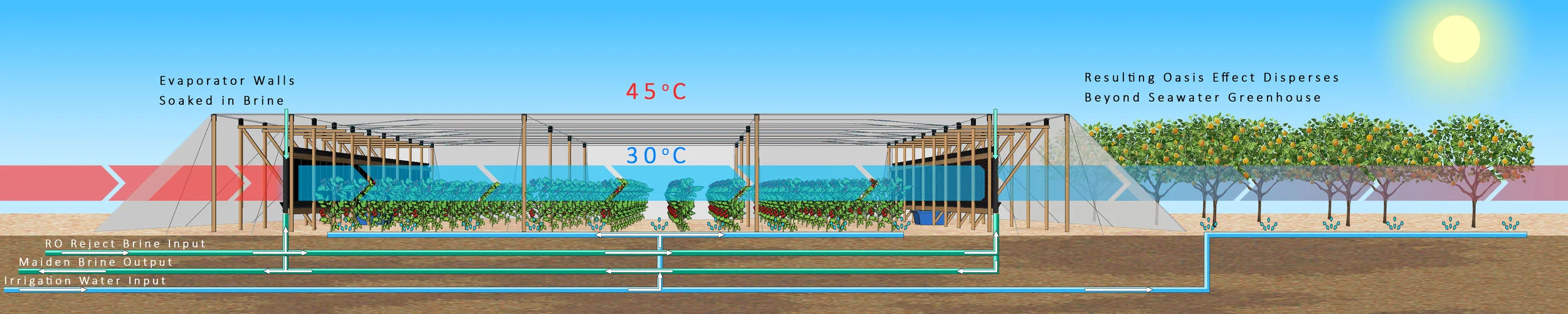 Seawater Greenhouse può fornire servizi completi di fattibilità, progettazione, implementazione e supporto per garantire che i nostri sistemi in crescita migliorino l'ambiente e la redditività, indipendentemente dalla posizione. I servizi includono:
